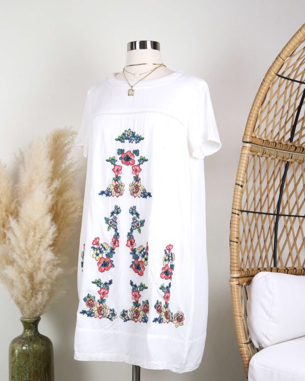 Ckoey Floral Embroidered Shift Dress in Ivory