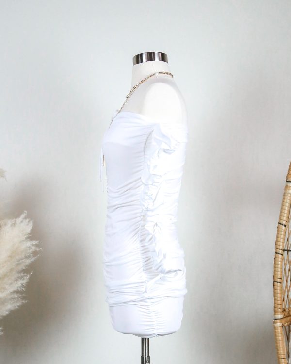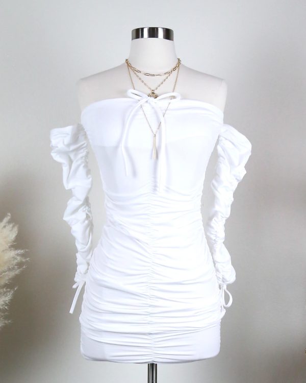 The Ckoey Mini Dress features a strapless sweetheart design, a ruched overall design and long ruched sleeves. It is fleece lined so you can be warn in the autumn and winter while still looking cute partying.